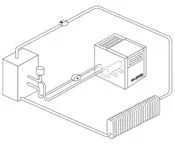Hier kommen Plattenwärmetauscher zum Einsatz. Das Heizungswasser wird durch den Plattenwärmetauscher in einen geschlossenen Mantel geführt. Dort fließt zwischen den Platten und Mantel das heiße Kompressoröl und gibt seine Wärmeenergie an das Heizwasser ab, welches anschließend zurück in den Heizkreislauf fließt.