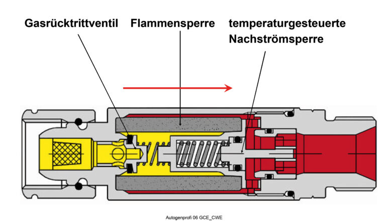 Aus diesem Grund werden diese Sicherheitseinrichtungen aus Arbeitsschutzgründen von der BG streng überwacht. Neben dem Sicherheitsaspekt spielt auch die Funktion (korrekte Durchflussmenge) eine große Rolle. Nur bei ausreichendem Durchfluss ist ein leistungsstarker Gebrauch von Autogengeräten möglich. Verstopfte Gebrauchsstellenvorlagen vermindern die Leistung sämtlicher Verbraucher. Daher sind Sicherheitsüberprüfungen an Gebrauchtstellenvorlagen sehr wichtig!
